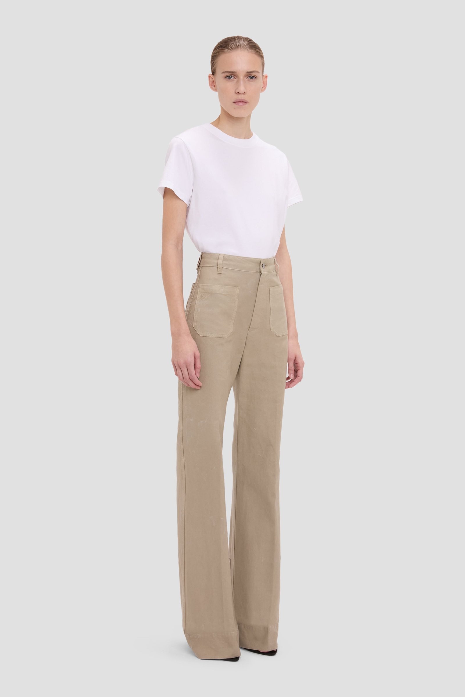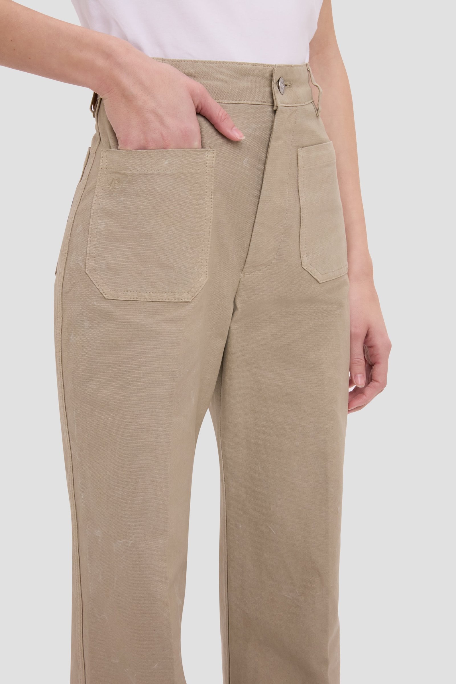 Фірмові штани Alina переосмислені зі 100% бавовняного праного полотна. Завдяки високій талії та широким штанинам вони мають видовжений силует, а накладні кишені є практичним та привабливим акцентом. Шкіряна нашивка з вишитим логотипом-монограмою Вікторії Бекхем доповнює образ.