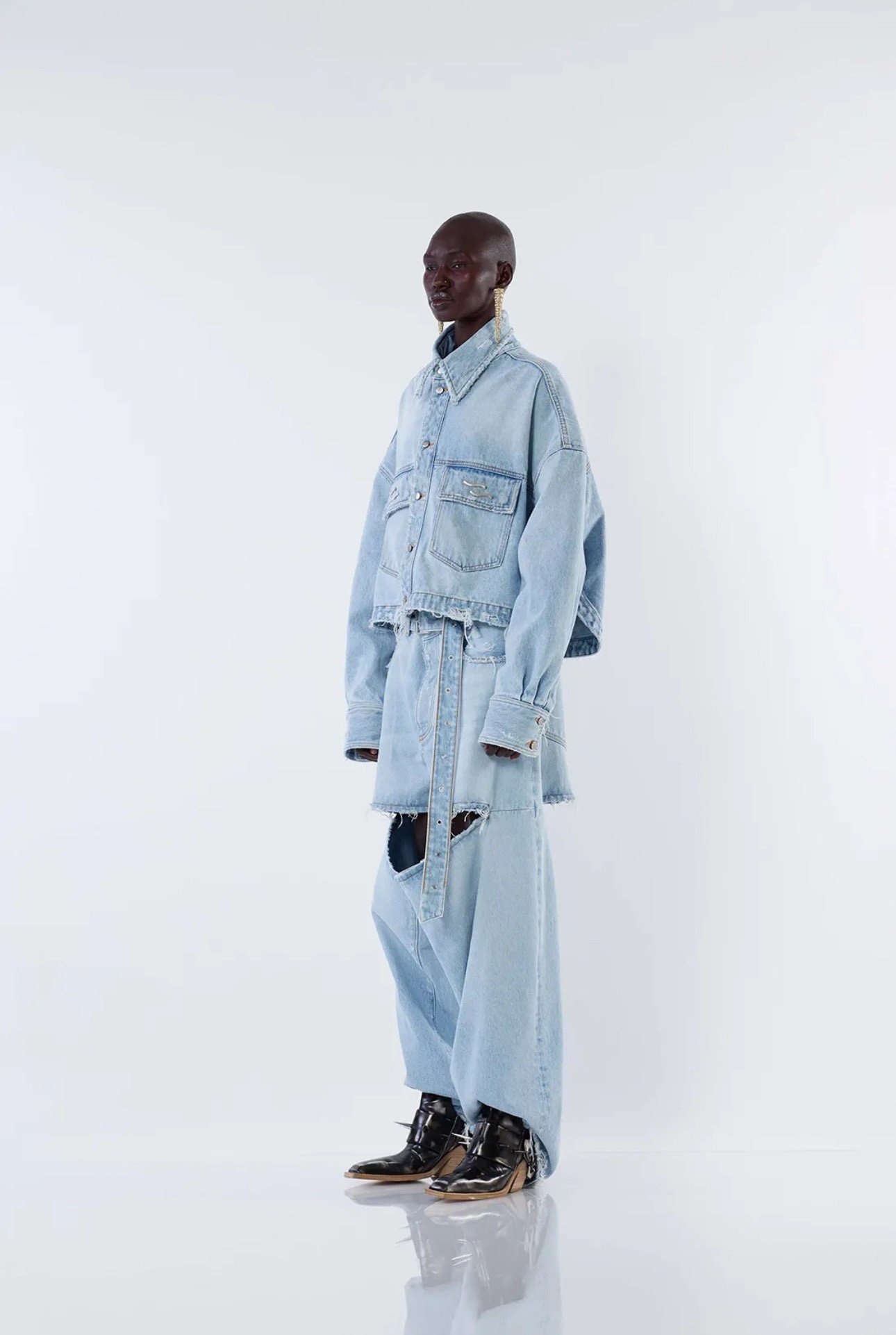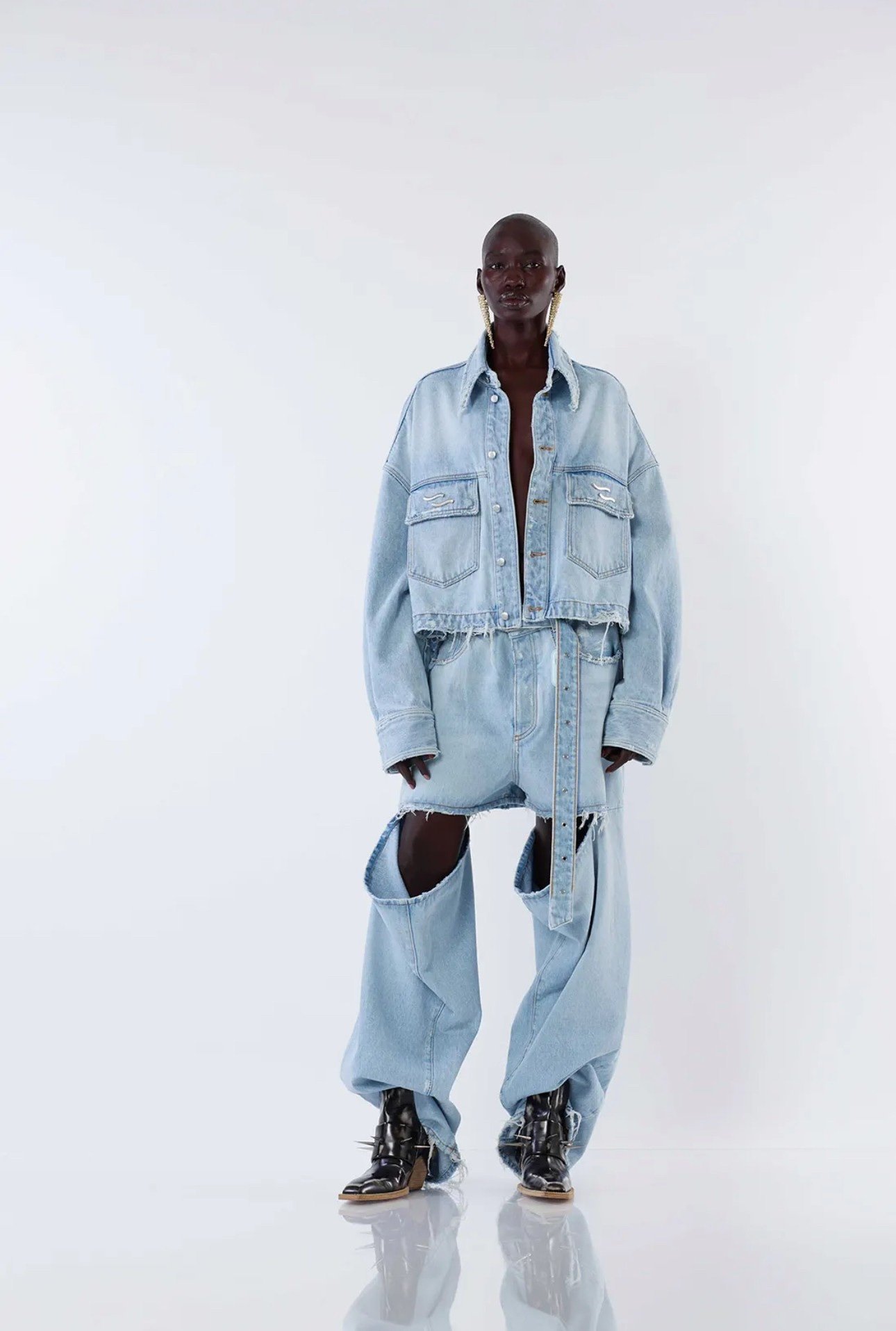 Укорочена джинсова куртка з функціональними кишенями та класичною сорочкою на гудзиках.