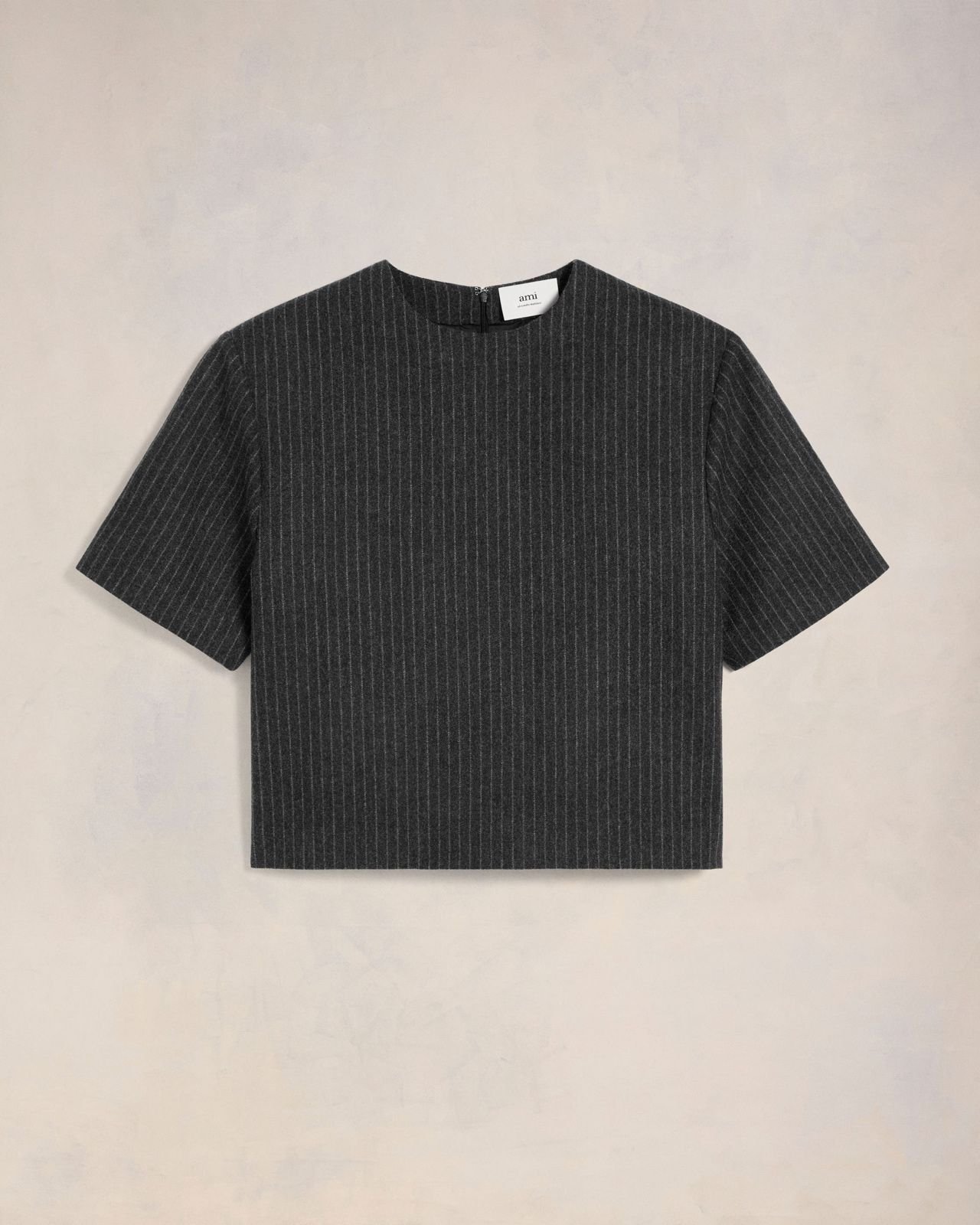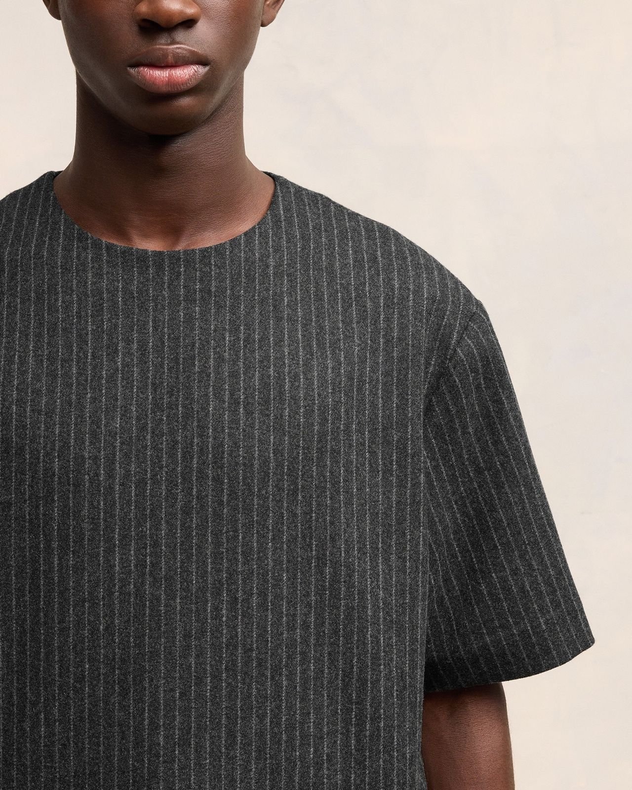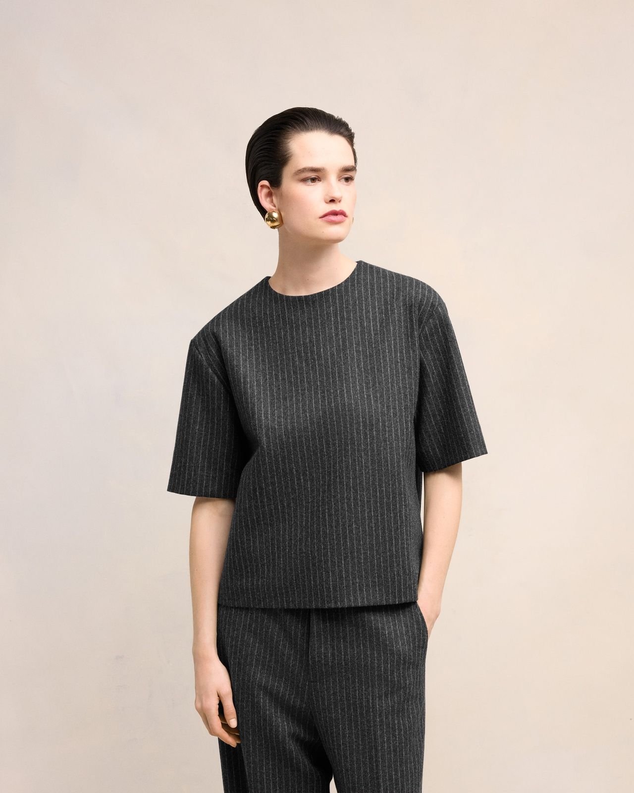 Топ з короткими рукавами зі смугастої вовняної фланелі.