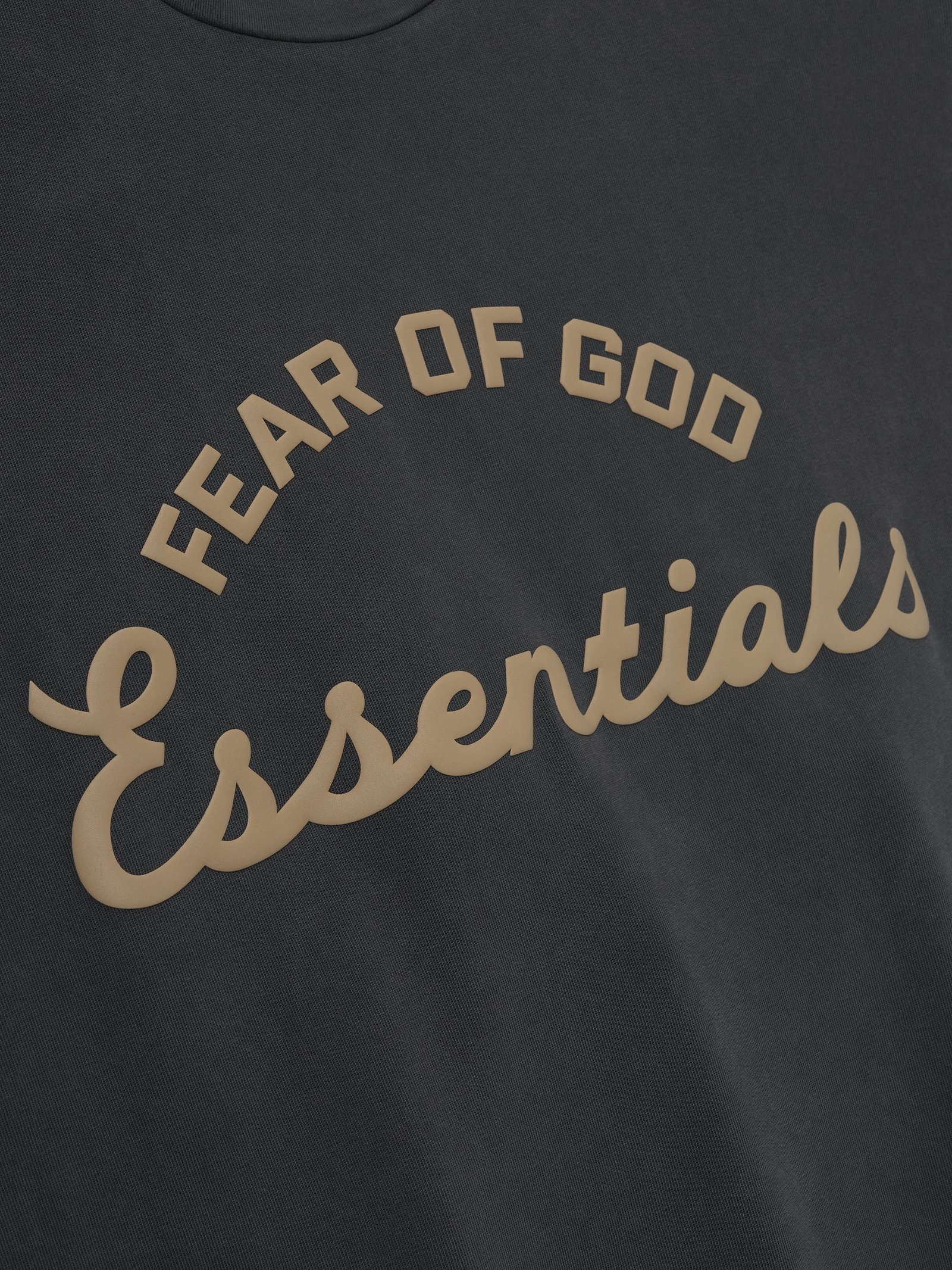 Футболка Training 90s виготовлена з щільного бавовняного трикотажу та оброблена пігментним барвником для створення автентичного вінтажного кольору. Футболка з круглим вирізом має крій 90-х, оверсайз-пропорції та занижені плечі. Передня частина доповнена пишним принтом тренувального зображення Fear of God Essentials. Додаткові деталі включають круглий виріз у ребристу в'язку та фірмову етикетку Essentials на задньому вирізі.