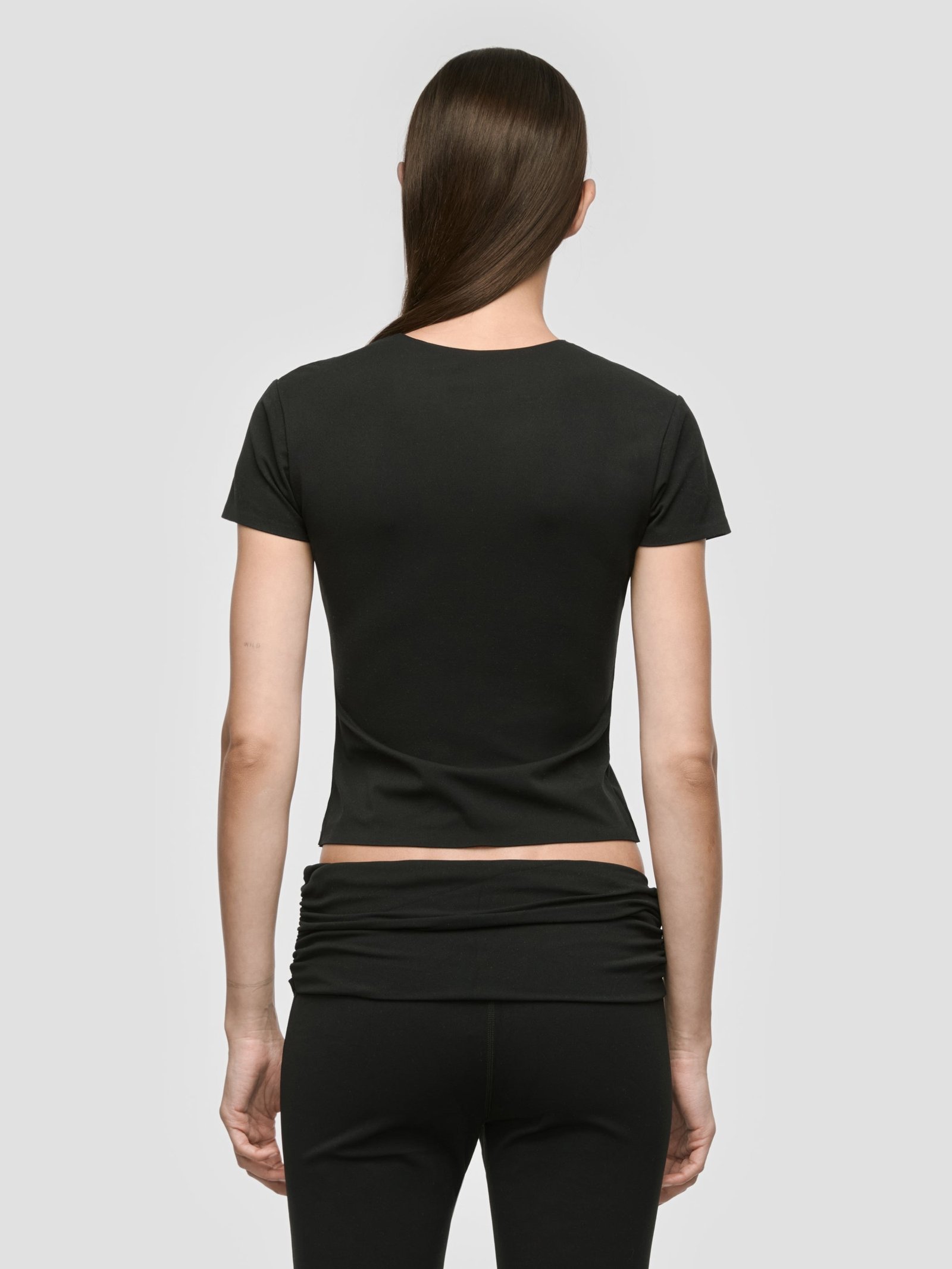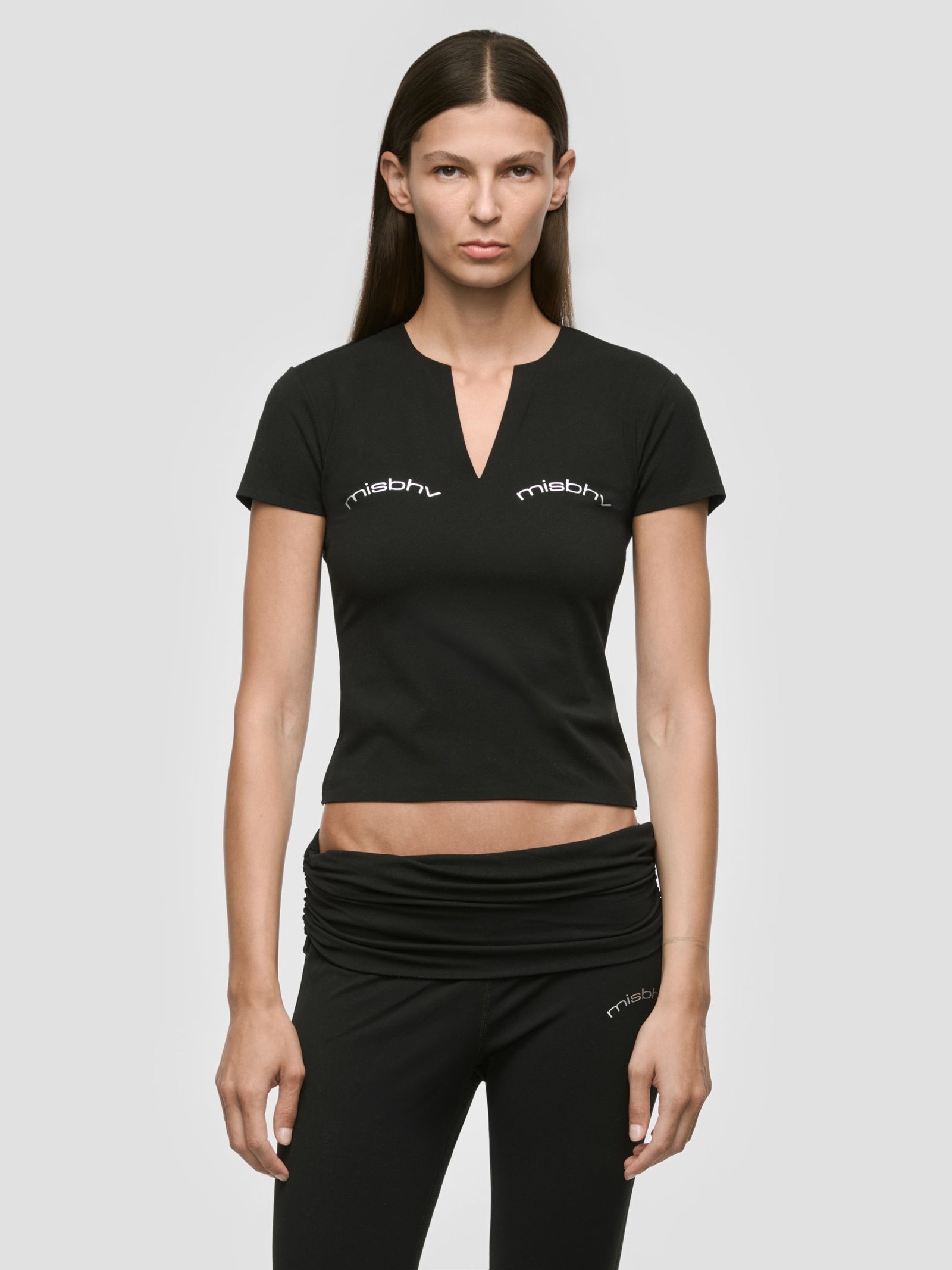 Футболка приталеного крою чорного кольору. Логотип надрукований спереду.