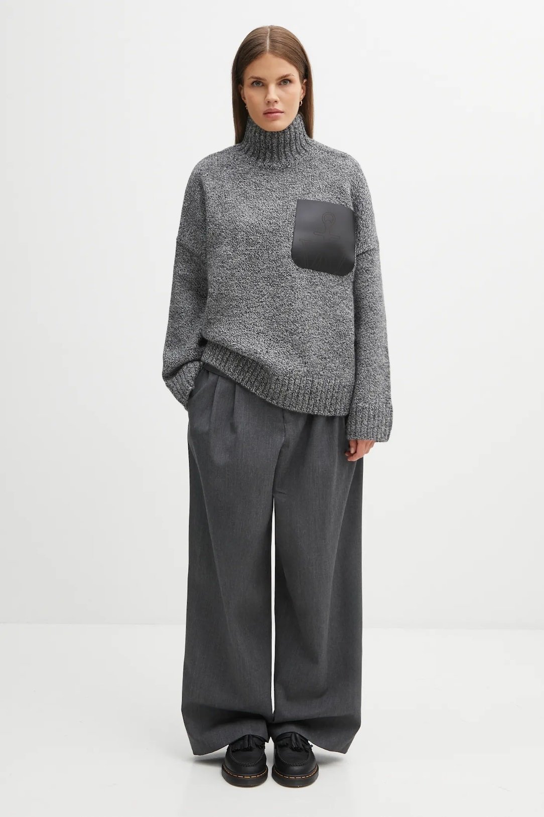 Светр з колекції JW Anderson виконаний із грубого трикотажу. Завдяки своїм високим терморегуляторним властивостям, шерсть допомагає зберігати тепло, коли холодно, і прохолоду, коли тепло.