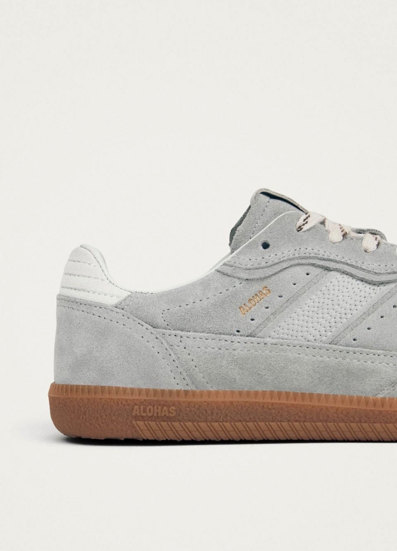 Кросівки виготовлені із замші з шкіряними деталями в тон.