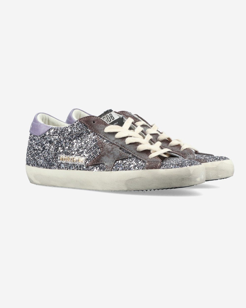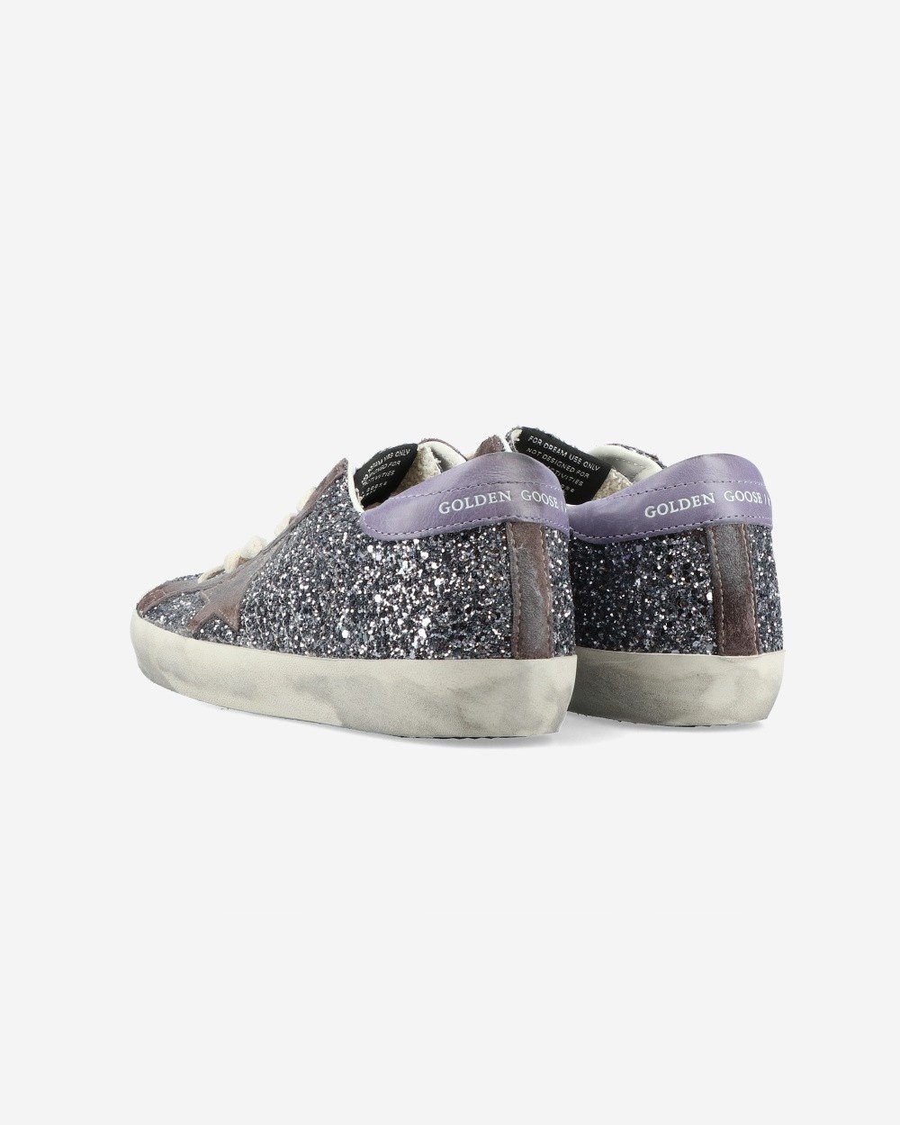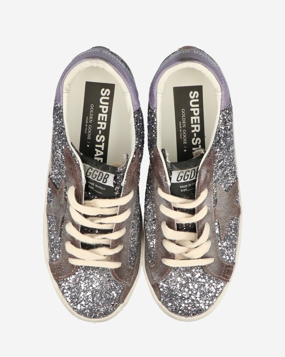 Фіолетові блискучі кросівки від Golden Goose Super Star - світло-антрацитові/фіолетові/сірі. Оздоблення шкіряною деталлю.