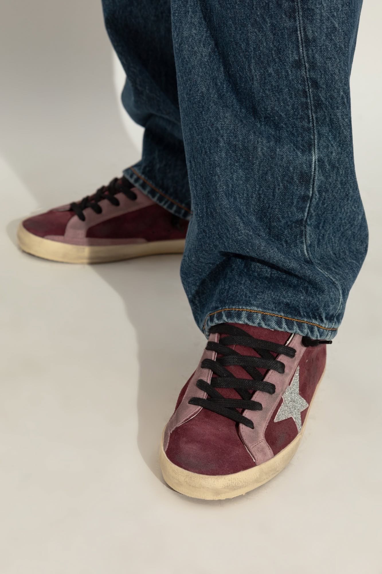 Модель має замшеву обробку та класичну форму із заокругленим носком. Характерна зірка світлого кольору прикрашає боковину взуття, а напис "GGDB/STAR" додає унікальний характер. Злегка потерта підошва підкреслює бунтарський дух бренду.