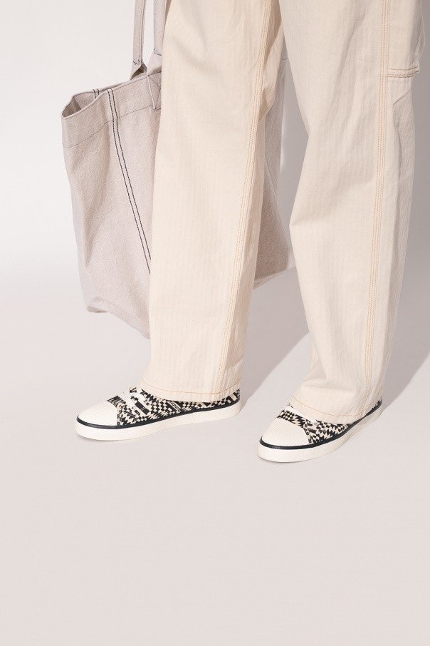 Кремово-чорні кросівки «Binkoo» від Isabel Marant. Прикрашені нашивкою з логотипом та графічним принтом, ці кросівки на шнурівці мають гумовий носок та гумову підошву.
