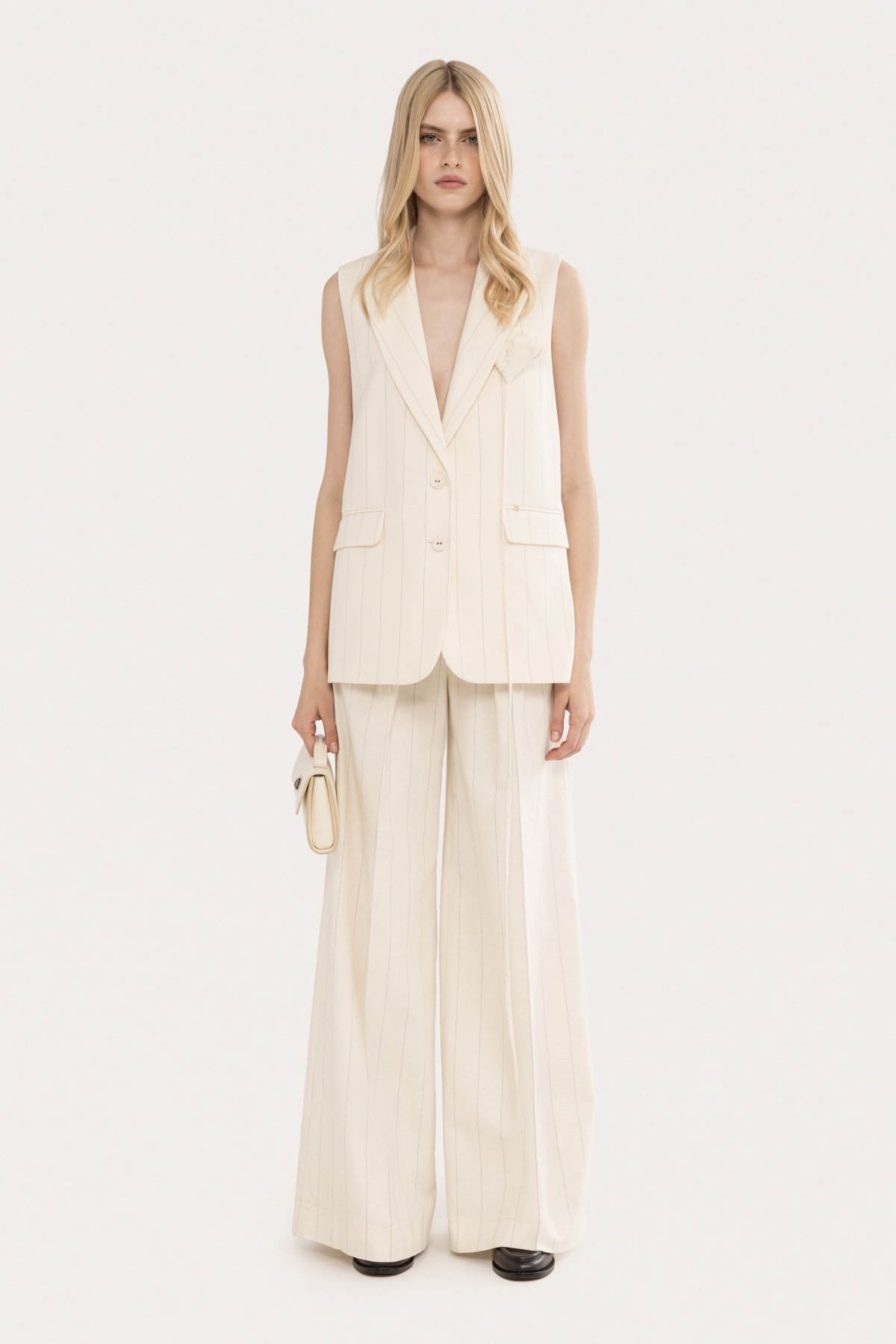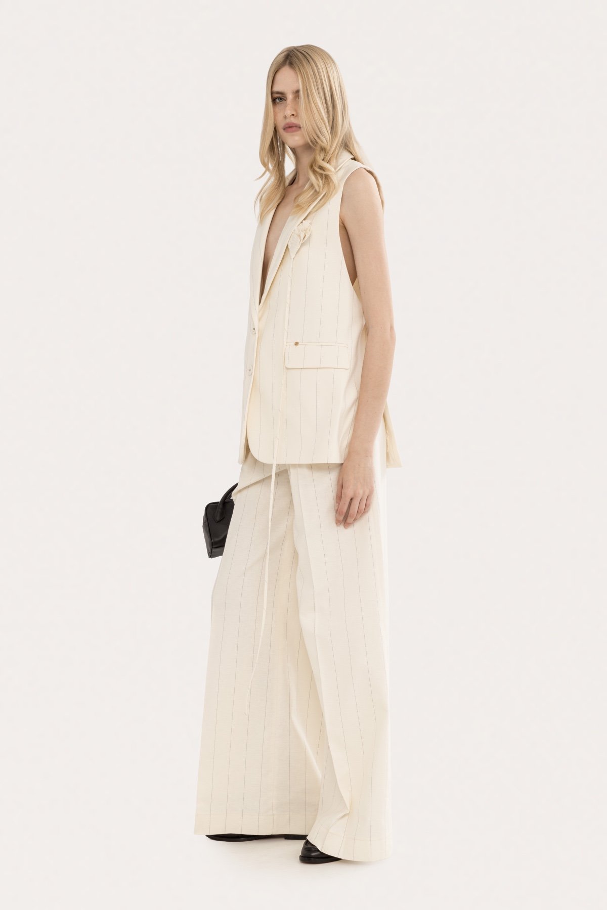 Однобортний жилет у тонку смужку