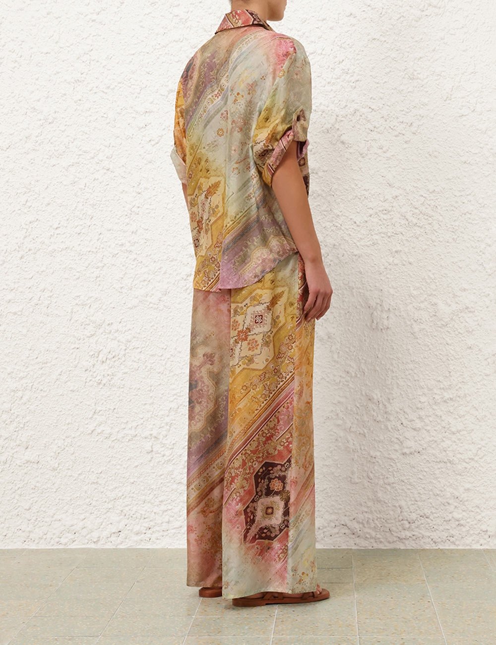 Шовкова сорочка з кам’яними ґудзиками по центру та закоченими рукавами з класичним коміром.