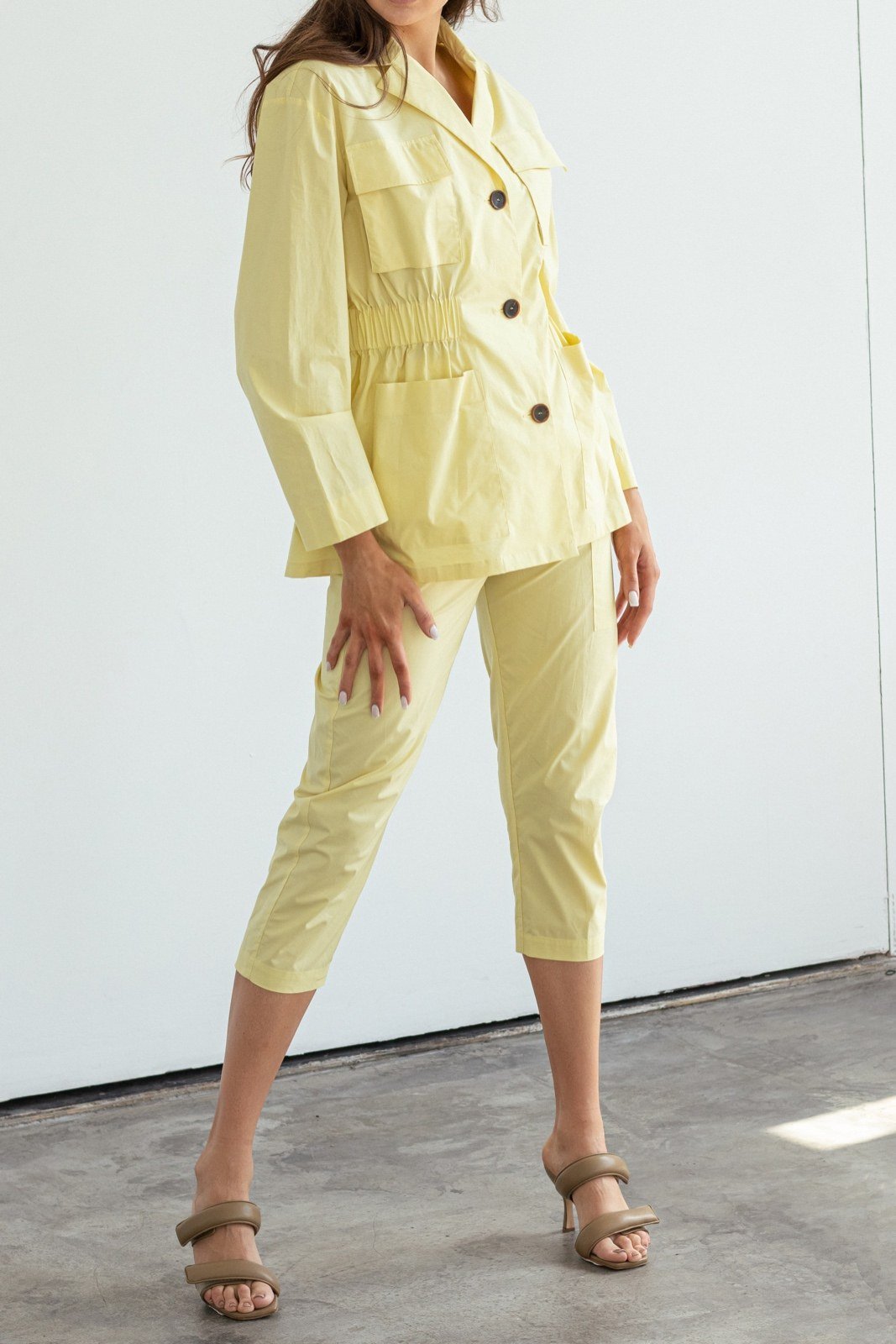 Сорочка в стилі сафарі з накладними кишенями і резинкою на талії та укорочені штани прямого фасону з макро-кишеньою збоку.