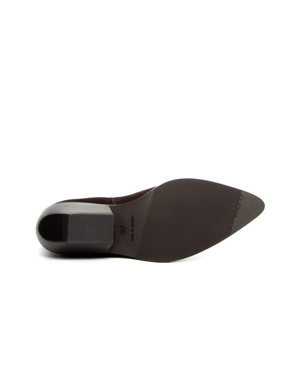 Загострений носок та заглиблений каблук. Шкіряна та гумова підошва.