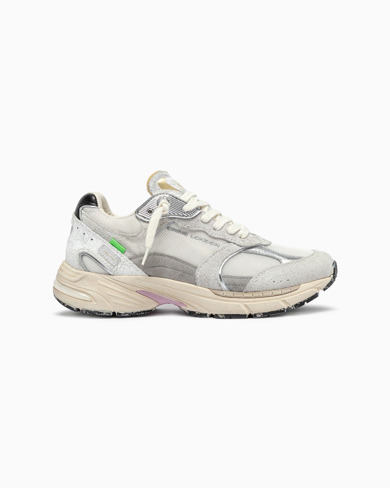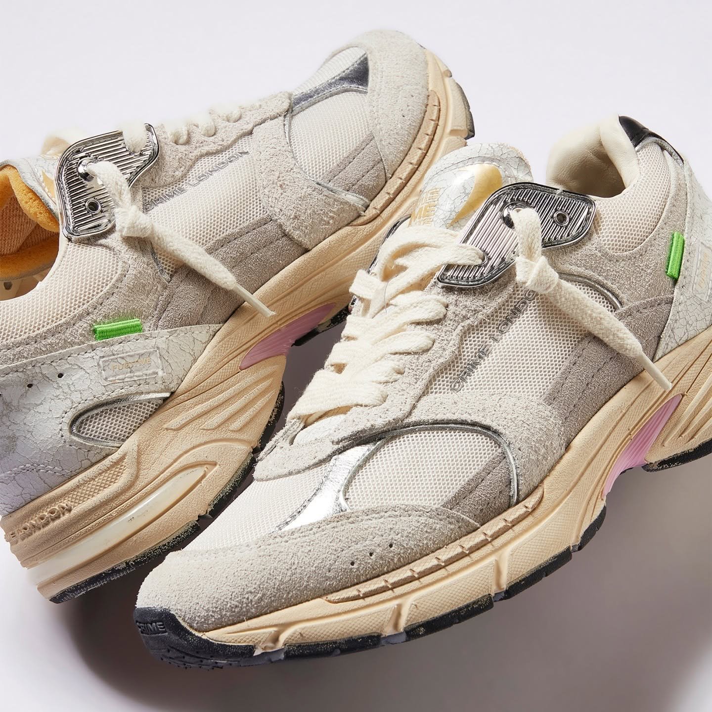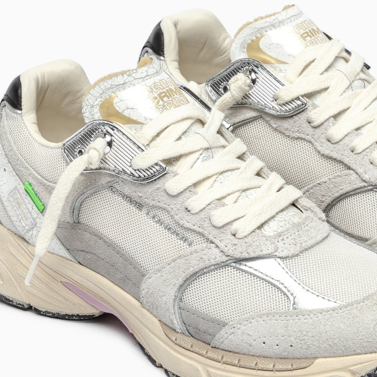 • Верх із світло-сірої замші та тканини з білими кракелюрними деталями із сірої замші