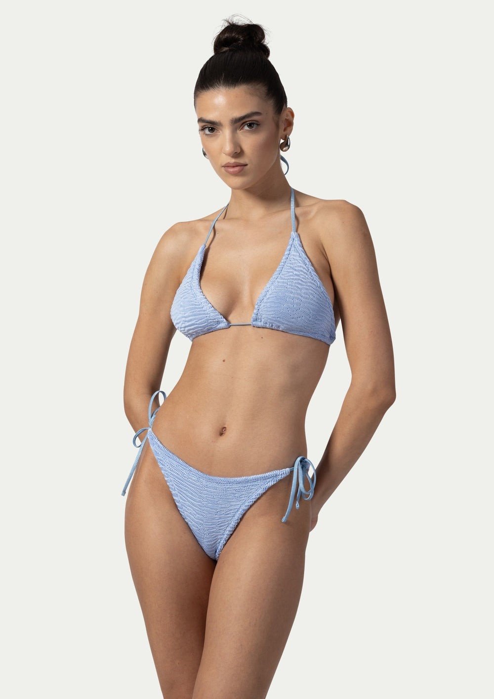 Бікіні Ema від PARAMIDONNA, що складається з двох частин, має незмінний трикутний верх, виготовлений з м’якої високоякісної тканини з надзвичайною еластичністю, що забезпечує зручну посадку для різних типів фігури.