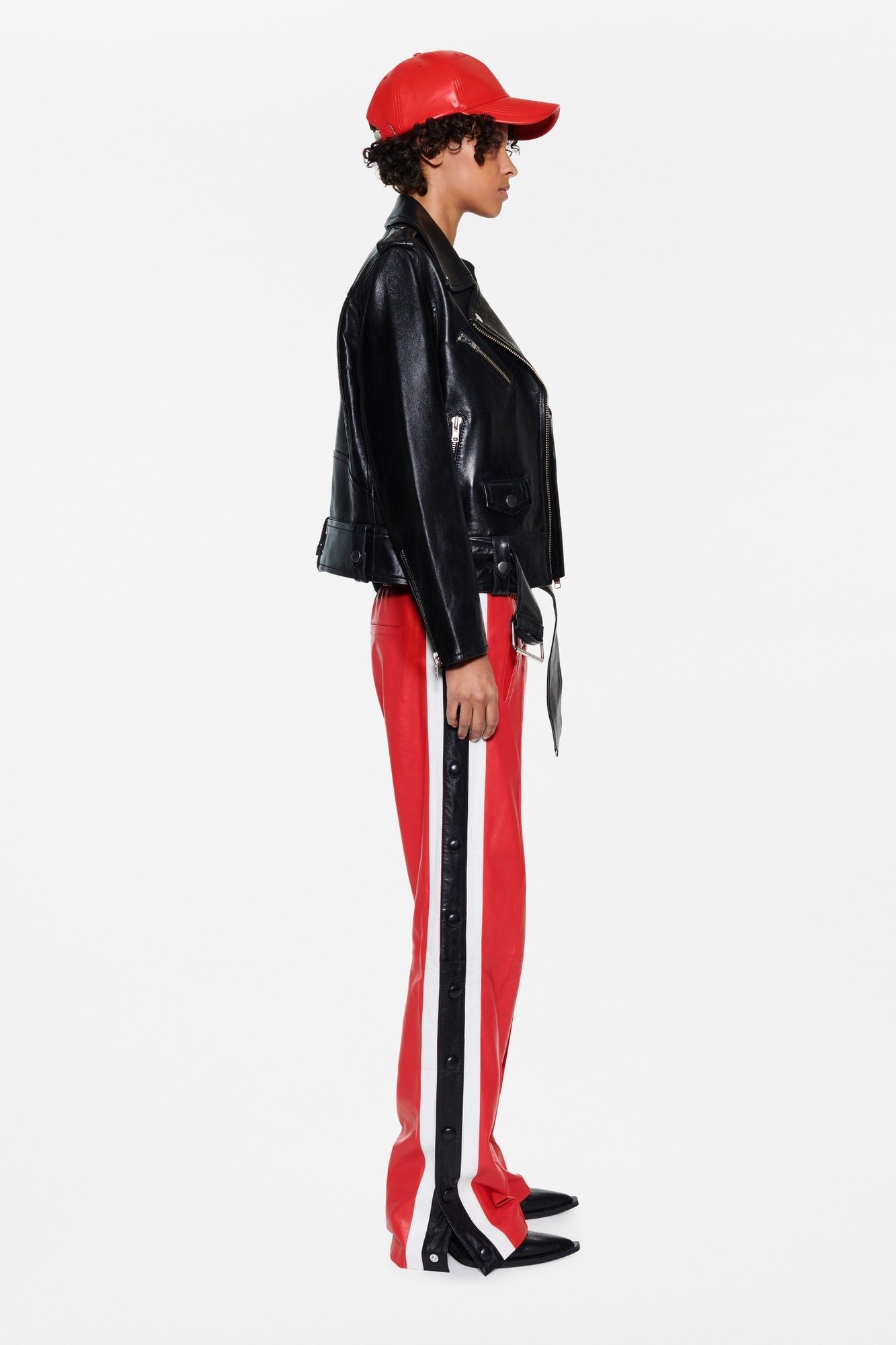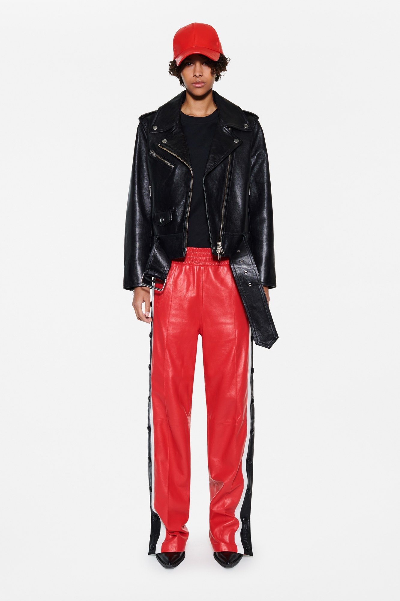 Байкерська куртка, виготовлена з натуральної шкіри з потертою обробкою. Цей виріб викроєно у вигляді оверсайз силуету з деталями на блискавці, еполетами на плечах і поясом на талії.