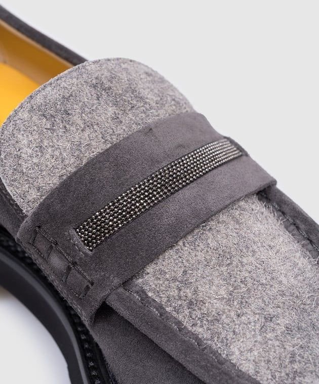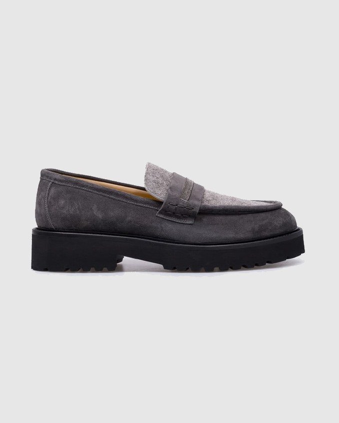 Сірі замшеві лофери з ланцюжком моніль