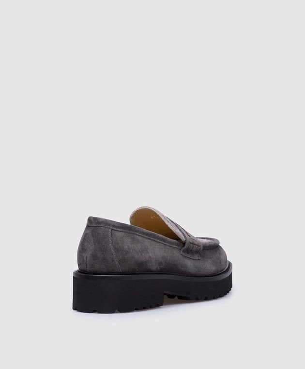 Сірі замшеві лофери з ланцюжком моніль