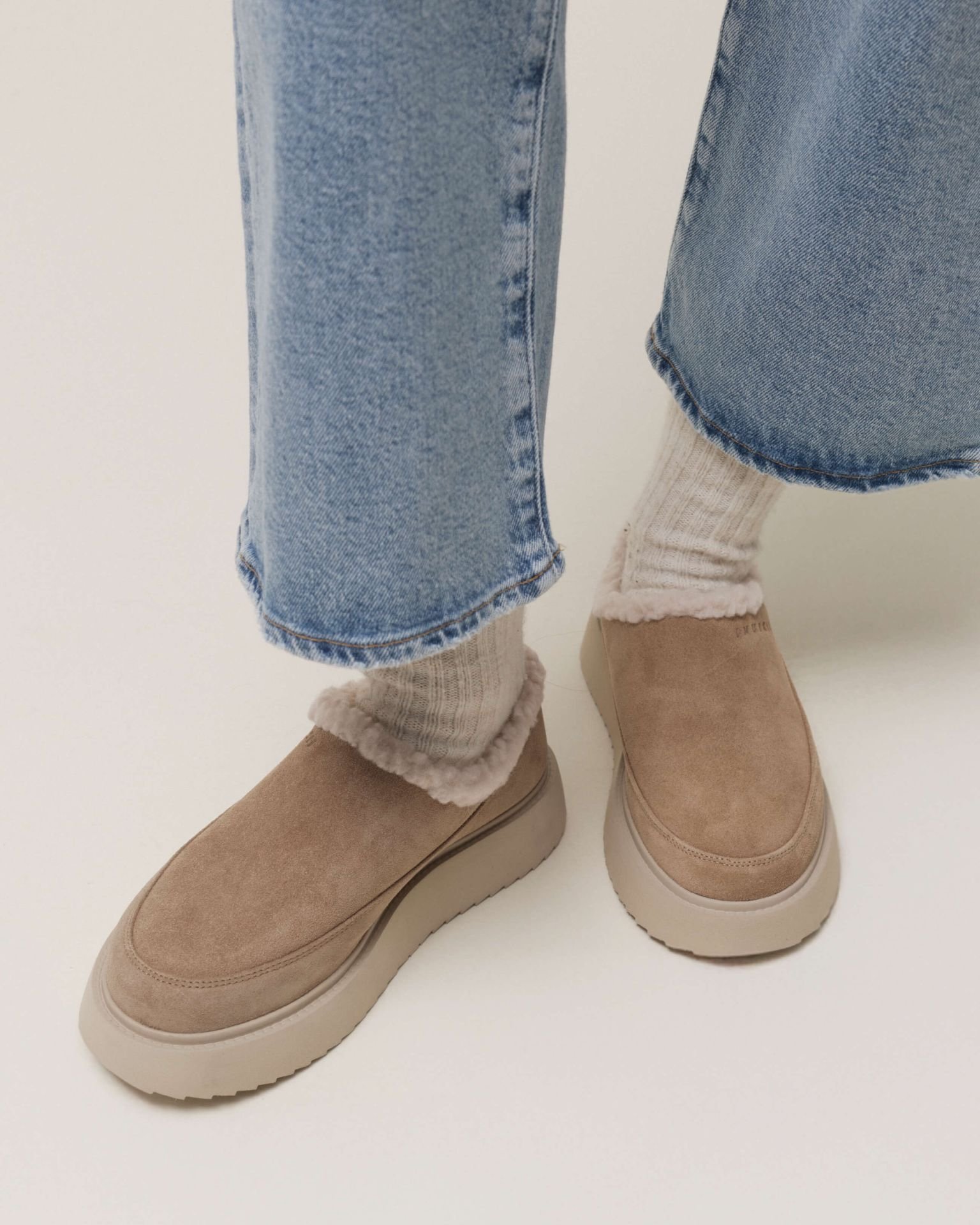 «Classic Micro» – це легке взуття без шнурівки з позачасовим дизайном. Маючи верх із замшевої шкіри та затишну вовняну підкладку, воно забезпечує безтурботний комфорт і тепло, що робить його ідеальним вибором для перехідного та зимового сезону.