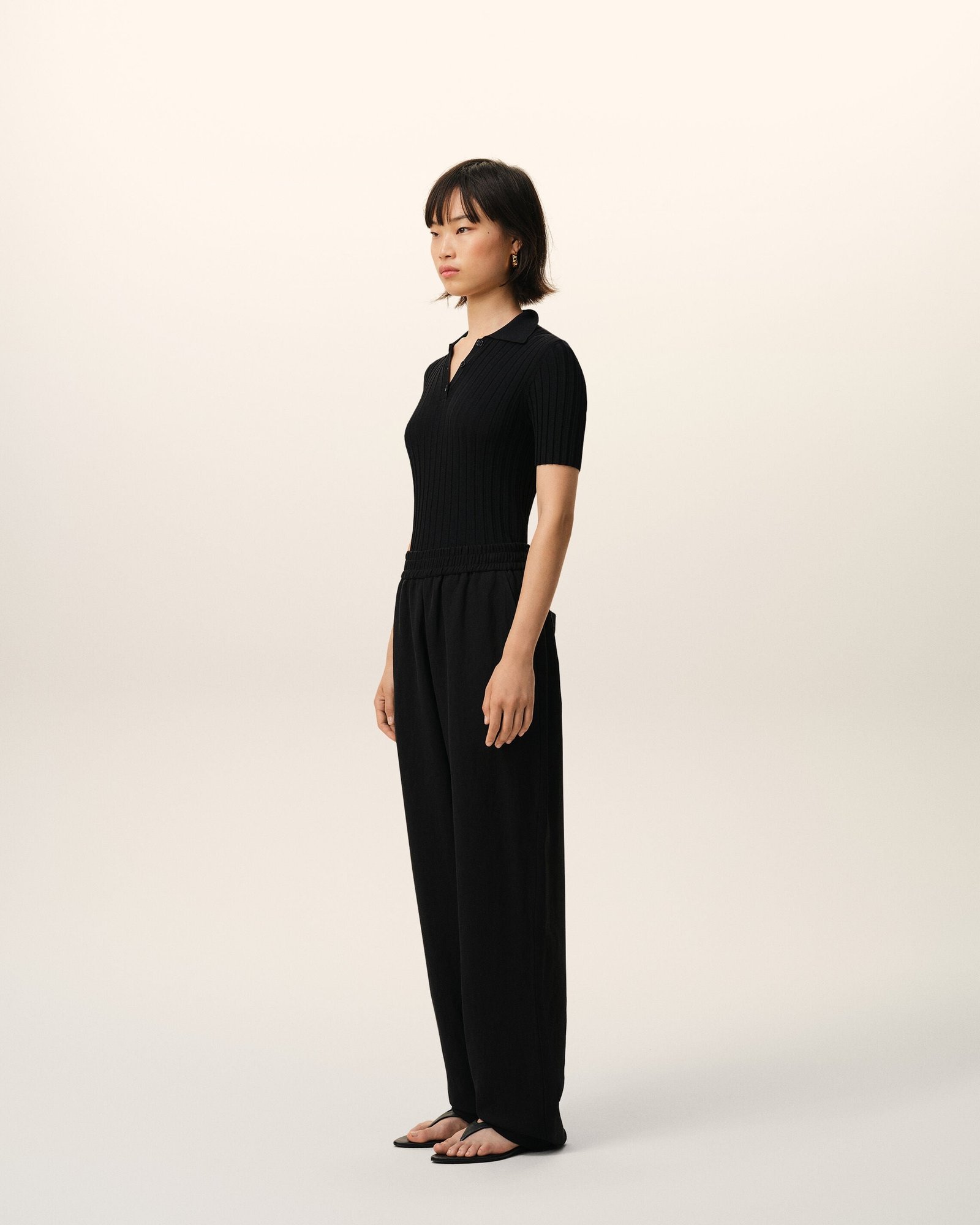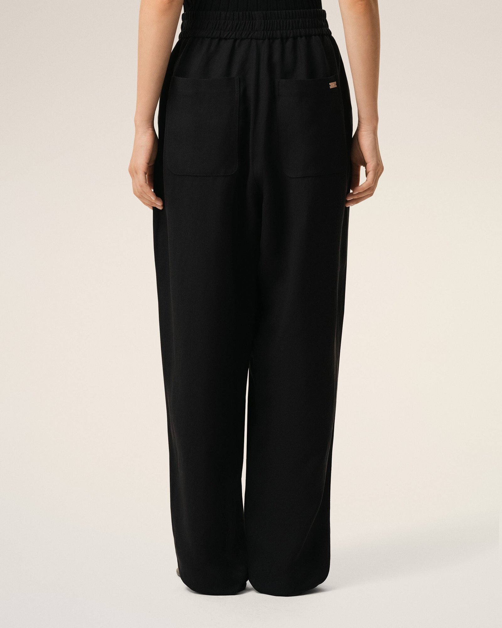 Штани з еластичною талією з віскози та лляного габардину.