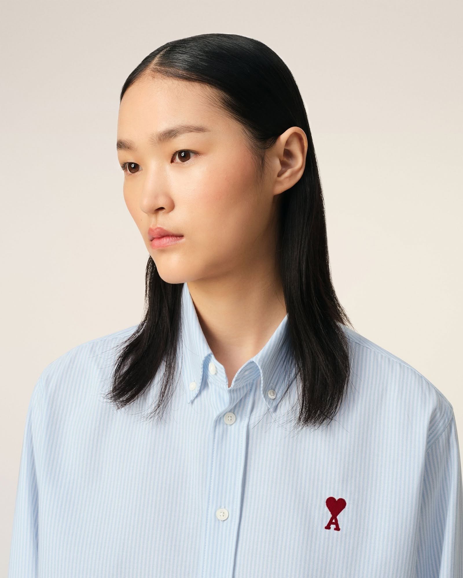 Бавовняна сорочка Ami de Coeur з коміром на ґудзиках у смужку.