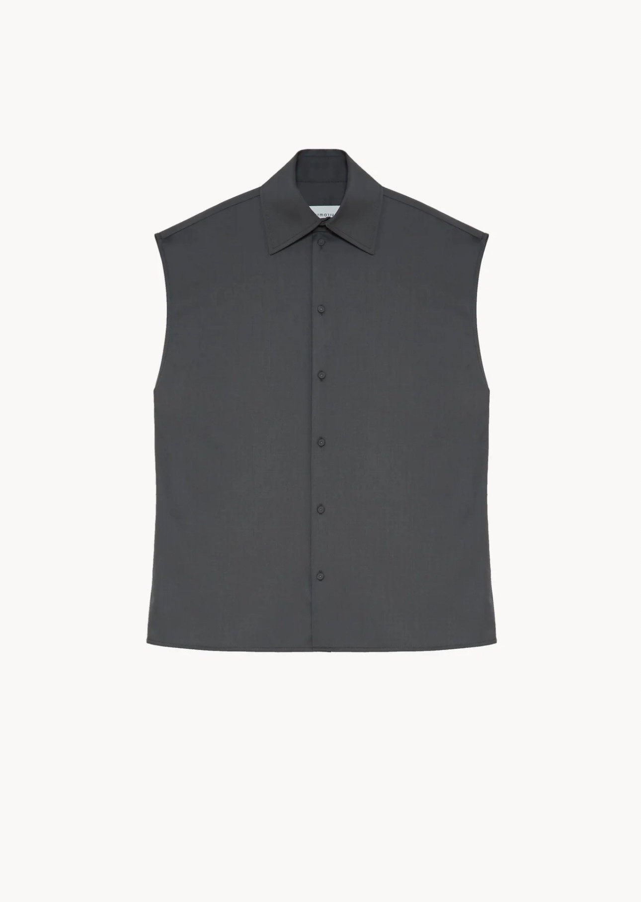 Майка оверсайз на ґудзиках з бавовняного попелину з відкритою передньою планкою на ґудзиках, яка характеризується відкритою фіксацією коміра з паладієвою латунню. Покриті ґудзики з бавовни.