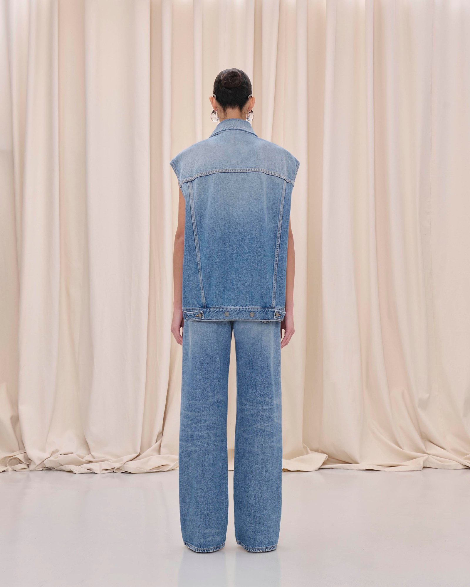 Джинсовий жилет класичного крою з подвійною застібкою