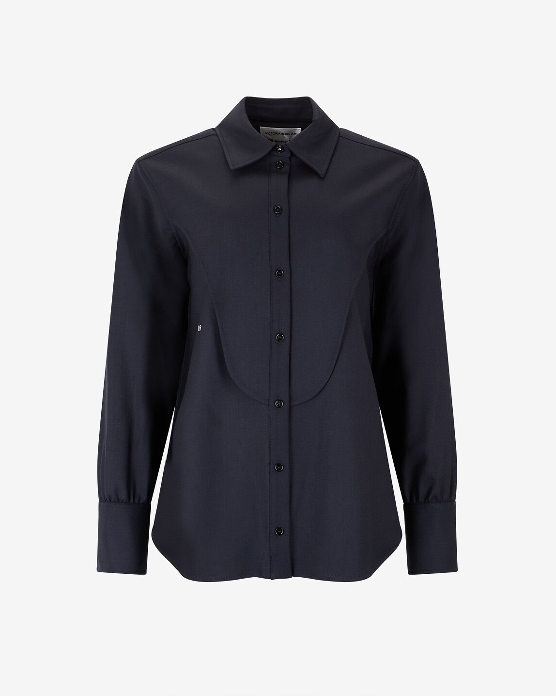 Виготовлена зі змішаної саржі з натуральної вовни, ця сорочка від Вікторії Бекхем переосмислює професійний стиль одягу, додаючи йому впевненості та шарму.