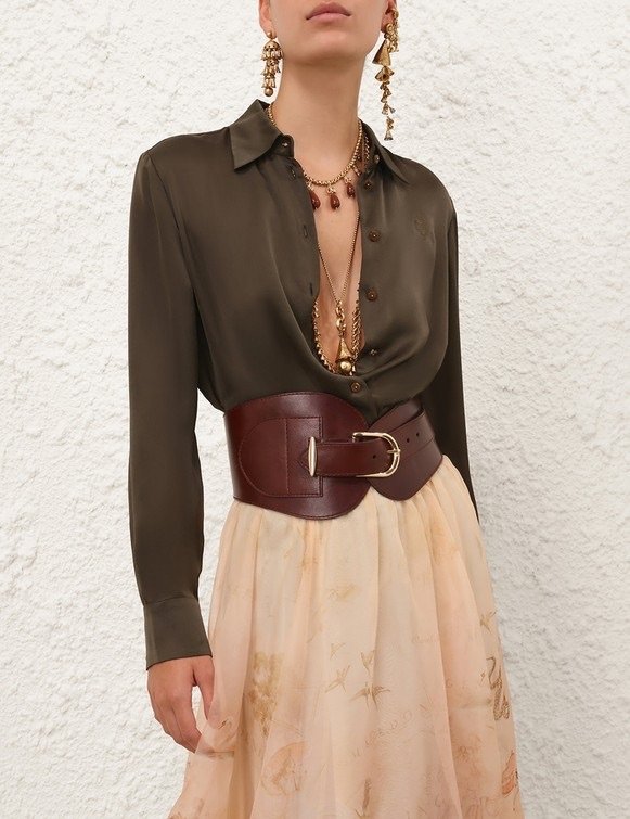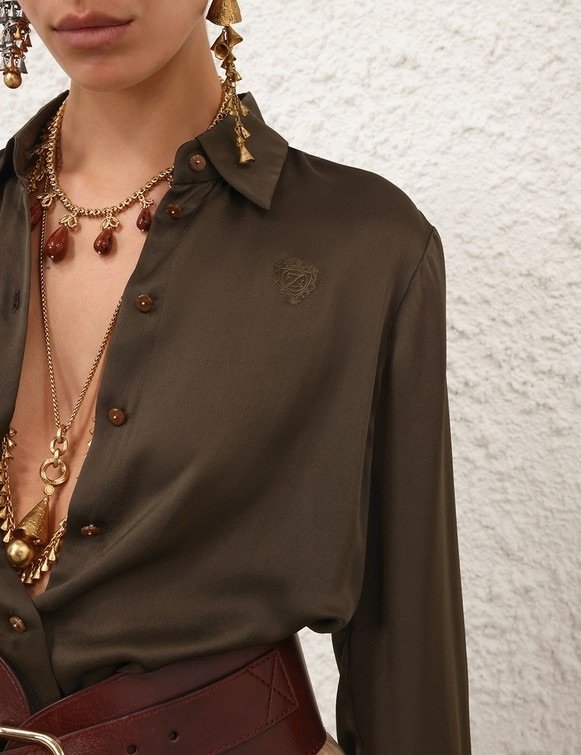 Атласна сорочка коричневого кольору з колекції Hypnotic осінь 2025 року.