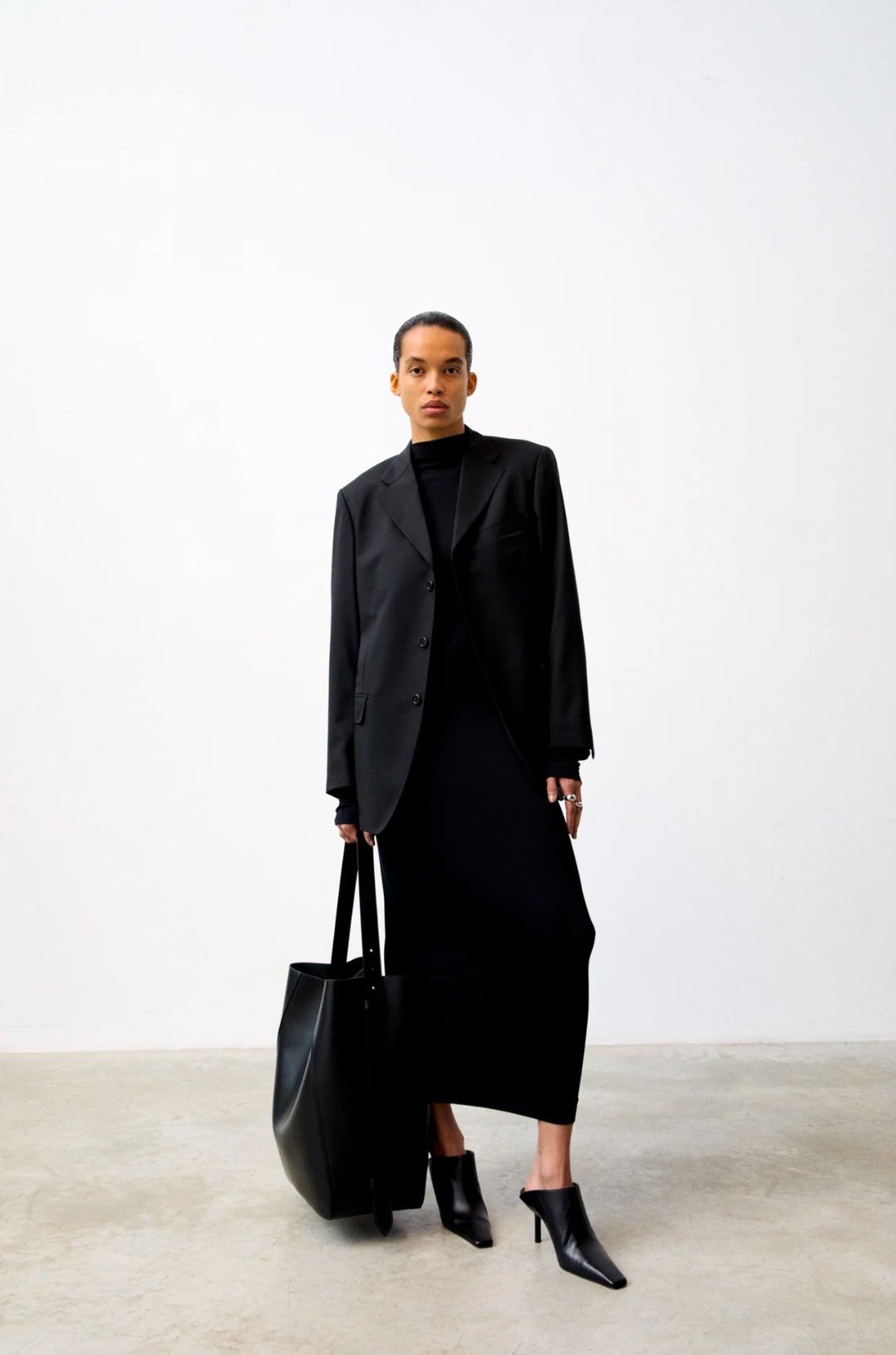 Приталена сукня міді з еластичної віскози з подовженими рукавами та єдиним швом по центру спини.