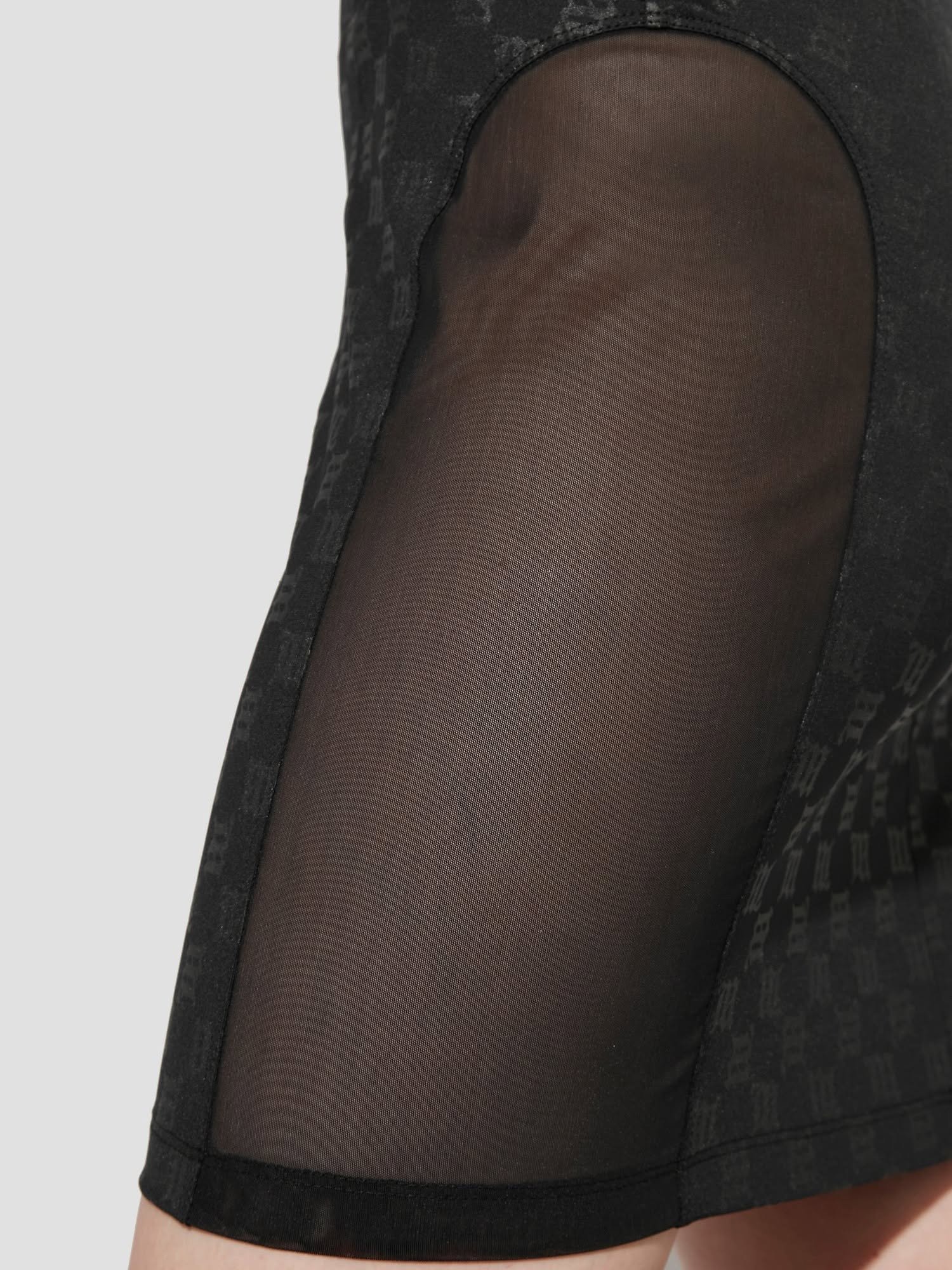Приталена сукня міні чорного кольору. Візерунок монограми всюди.