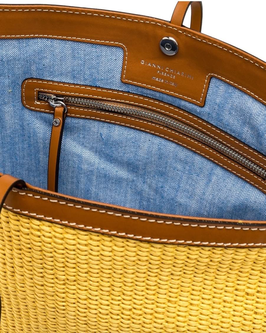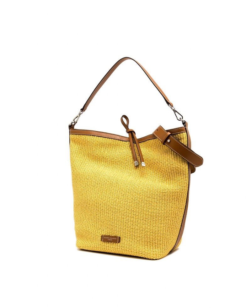 Сумка-відро Vanessa від Gianni Chiarini Firenze виготовлена з плетеної соломи, пофарбованої в шматочки, і прикрашена металевими деталями. Шикарний, але водночас невимушений. Оснащений знімною верхньою ручкою і практичним плечовим ременем. Магнітна застібка зверху та зручний клатч всередині.