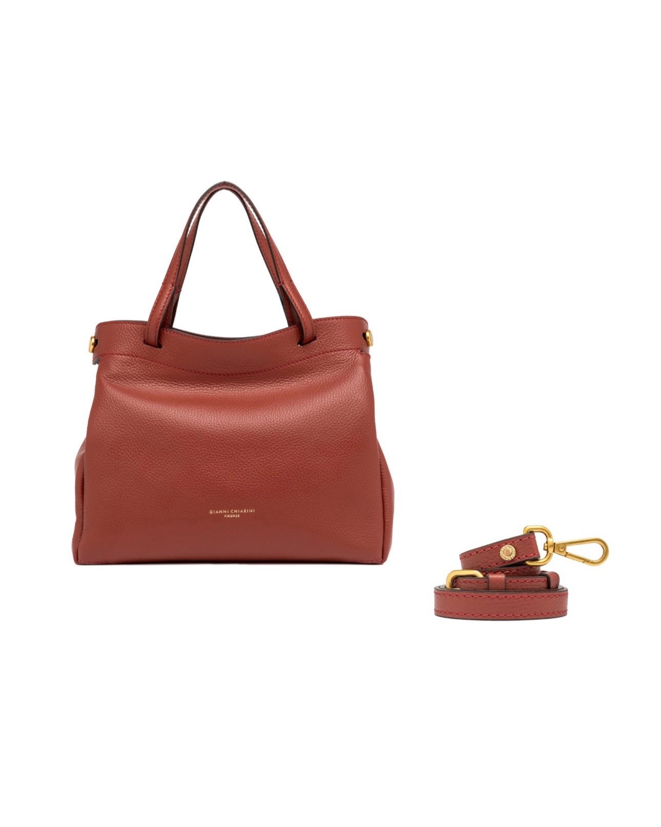 Модель Ottavia від Gianni Chiarini Firenze виготовлена з фактурної шкіри. Містка та підходяща для щоденного використання, її можна носити як через плече завдяки плечовому ременю, що входить у комплект, так і в руках, завдяки регульованій ручці. Модель доповнена великим кільцем із логотипом та застібається на блискавку.
