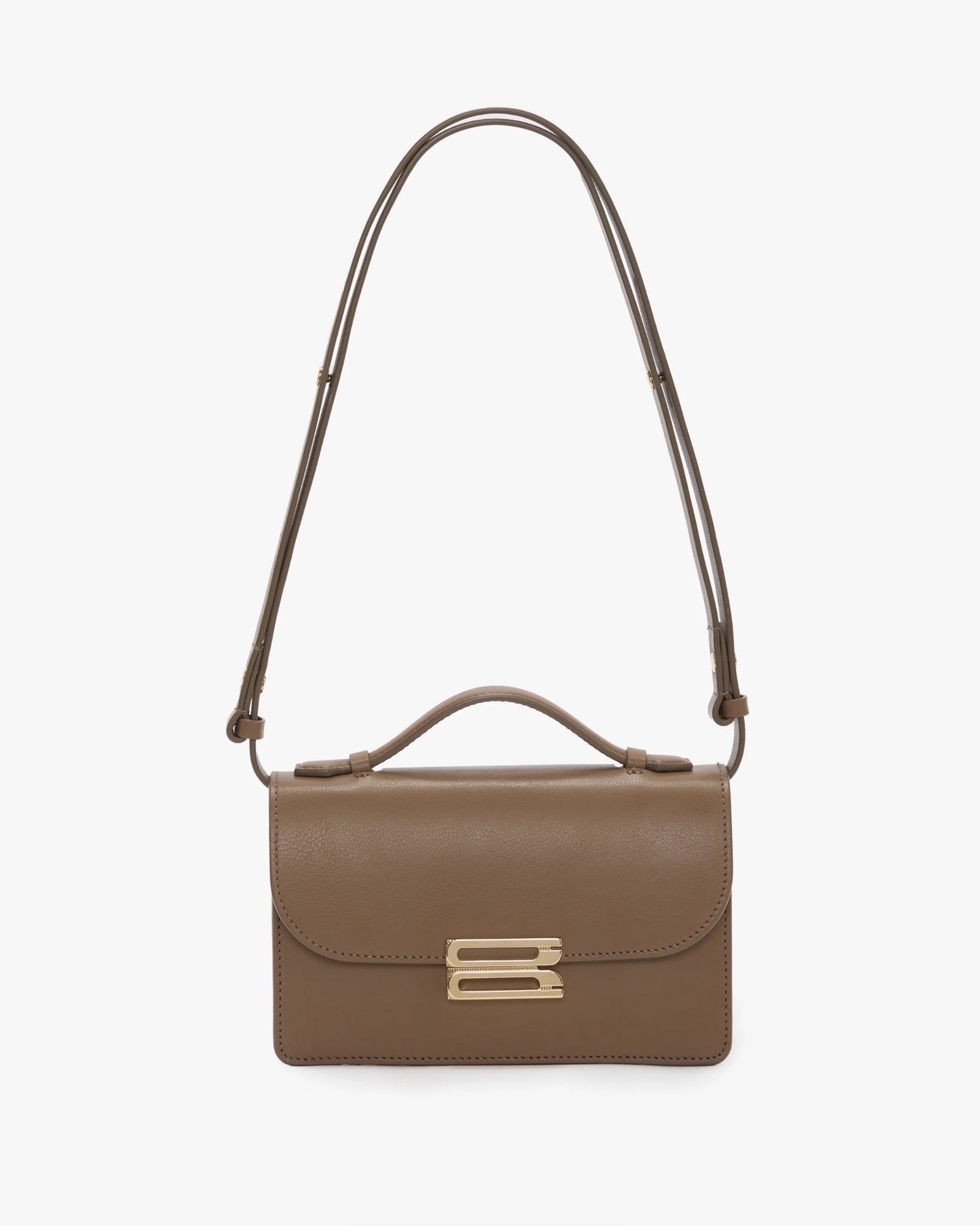 Маленька сумка Dorian з магнієвого матеріалу виготовлена з телячої шкіри та має знімний «розумний ремінець» із кнопками для універсального носіння як через плече, через плече або клатч. На ній фірмовий золотий логотип дому та витиснена адреса лондонської студії Victoria’s.