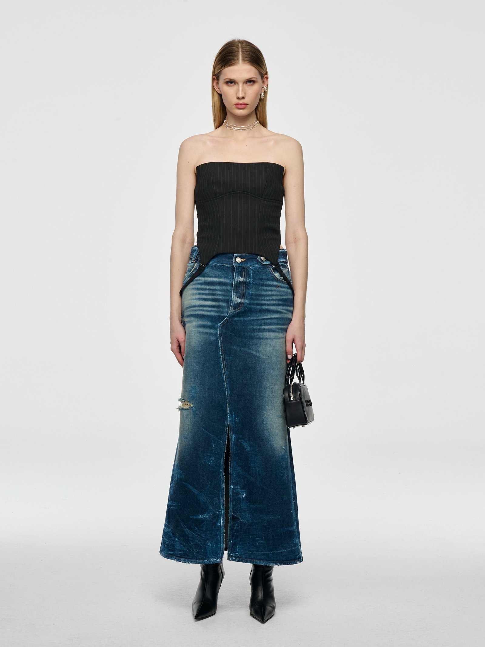 Корсет-топ у тонку смужку чорного кольору.