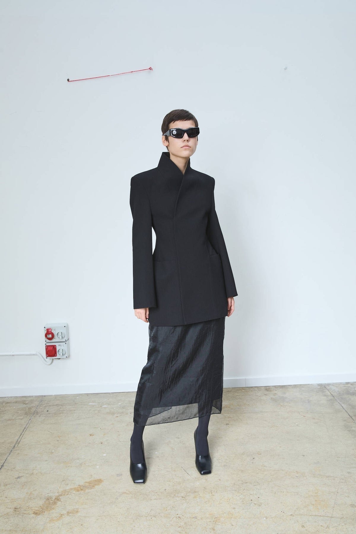 Це пальто строгого крою вирізняється витонченим силуетом та сучасним мінімалізмом. З елегантним перехресним передом та шалевими лацканами воно підкреслює талію, зберігаючи чіткі плечі та чисті лінії. Дизайн поєднує вишукану елегантність із сучасним стилем, виготовлений зі суміші тканин, яка забезпечує як структуру, так і комфорт. Повністю з підкладкою для плавного крою, воно плавно переходить з денного у вечірній образ.